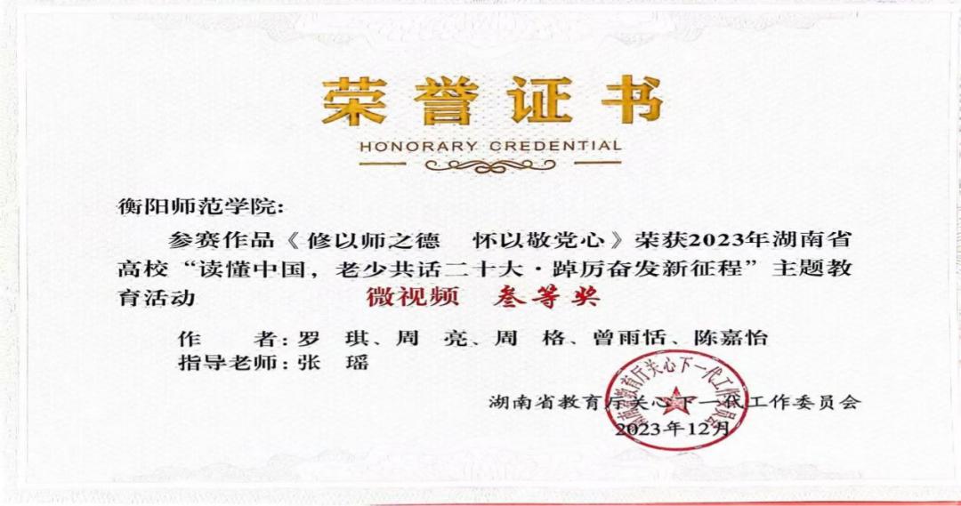 3.2023年荣获湖南省大学生“读懂中国”主题教育活动视频作品三等奖