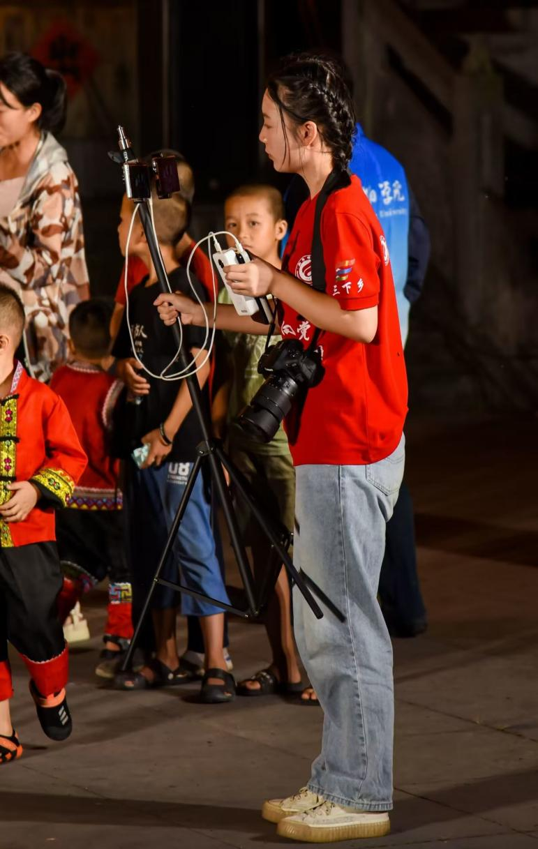 在邵阳城步大寨社区,陈嘉怡两次随三下乡团队深入山乡。面对当地老人“一生未走出大山,却从未留下一张生活照”的遗憾,她与伙伴们一拍即合,决定:“为他们拍一次照吧!”他们背着相机翻越崎岖山路,在楼前为银发老人整理服饰衣襟,在溪水边记录他们劳作归来的笑容。当年迈的爷爷奶奶捧着照片反复摩挲、露出笑容时,陈嘉怡红了眼眶,快门按下的瞬间,她触摸到了生命与生命之间最纯粹的联结。
