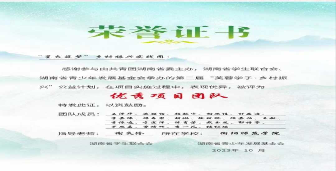 2.2023年荣获湖南省“芙蓉学子·乡村振兴”公益计划优秀项目团队