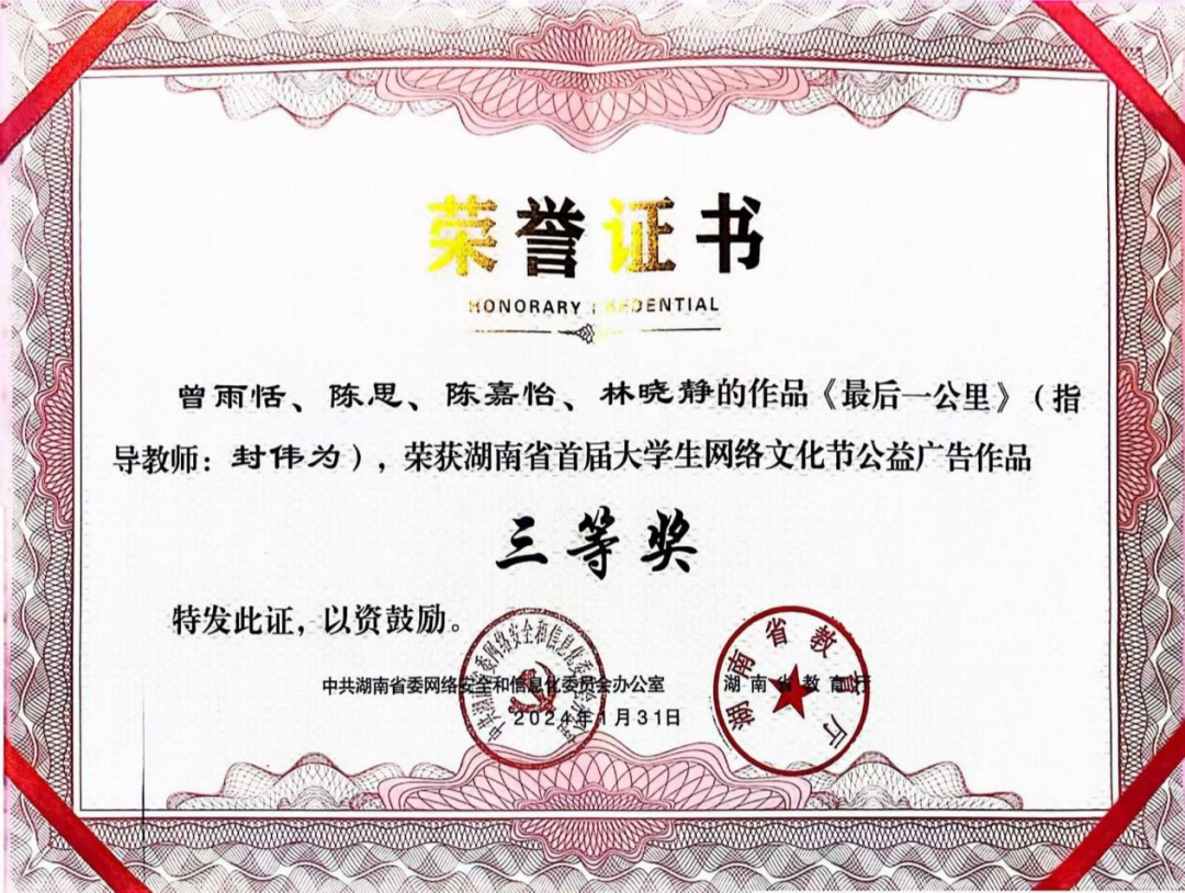 6.2024年荣获湖南省首届大学生网络文化节公益广告作品三等奖