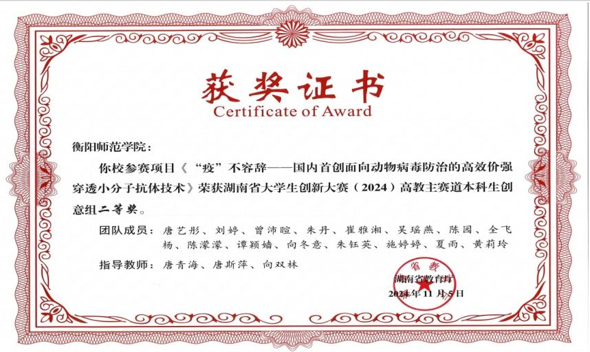 2、第九届全国大学生生命科学竞赛创新创业类国家级二等奖