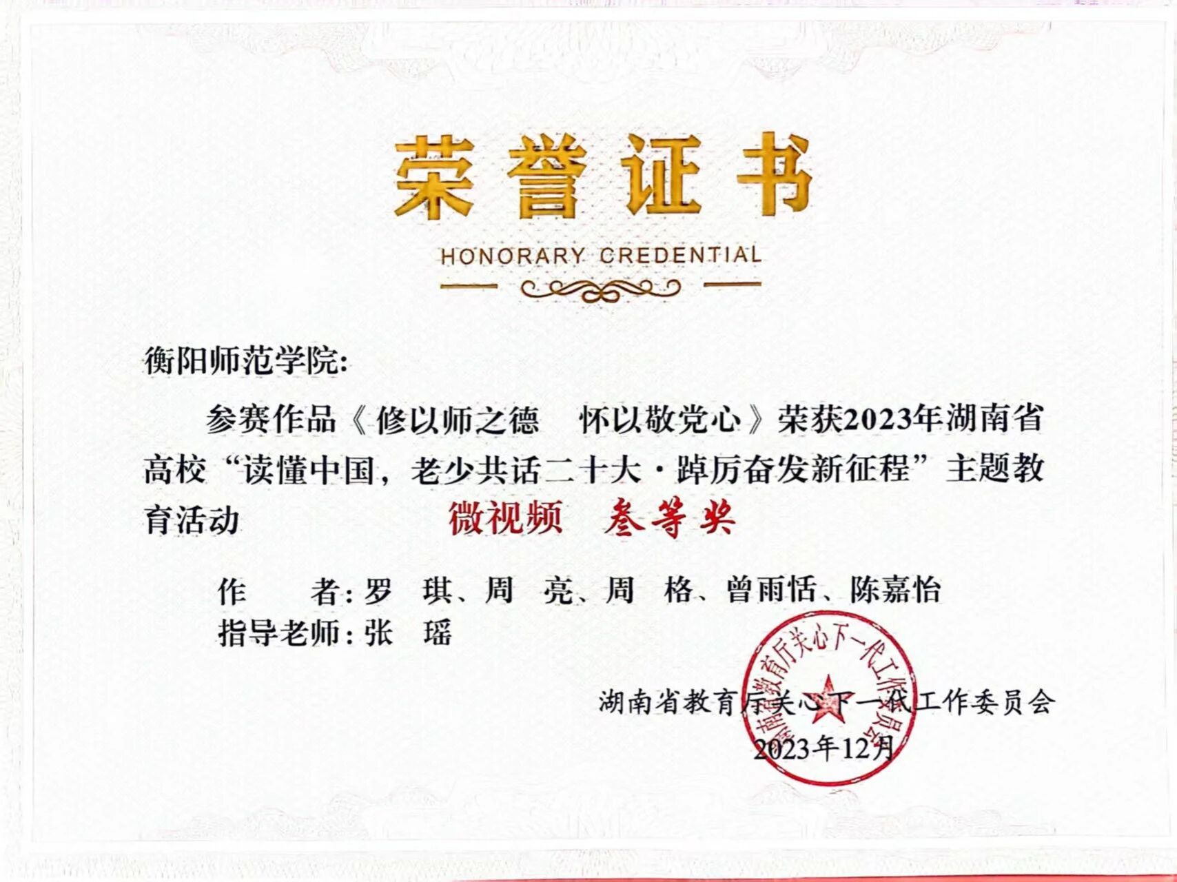 “读懂中国”主题教育微视频比赛三等奖