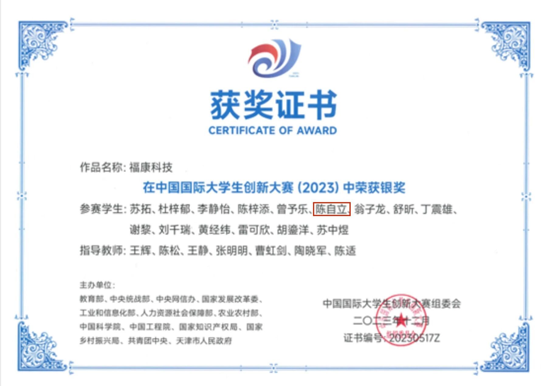 中国国际大学生创新大赛(2023)银奖