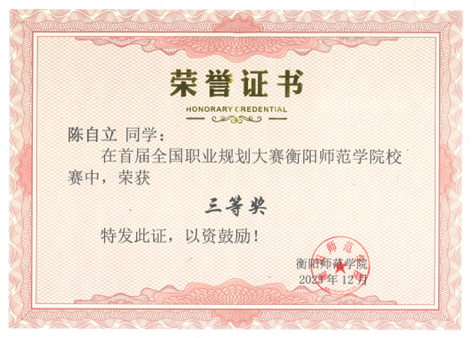 首届全国职业规划大赛校赛三等奖