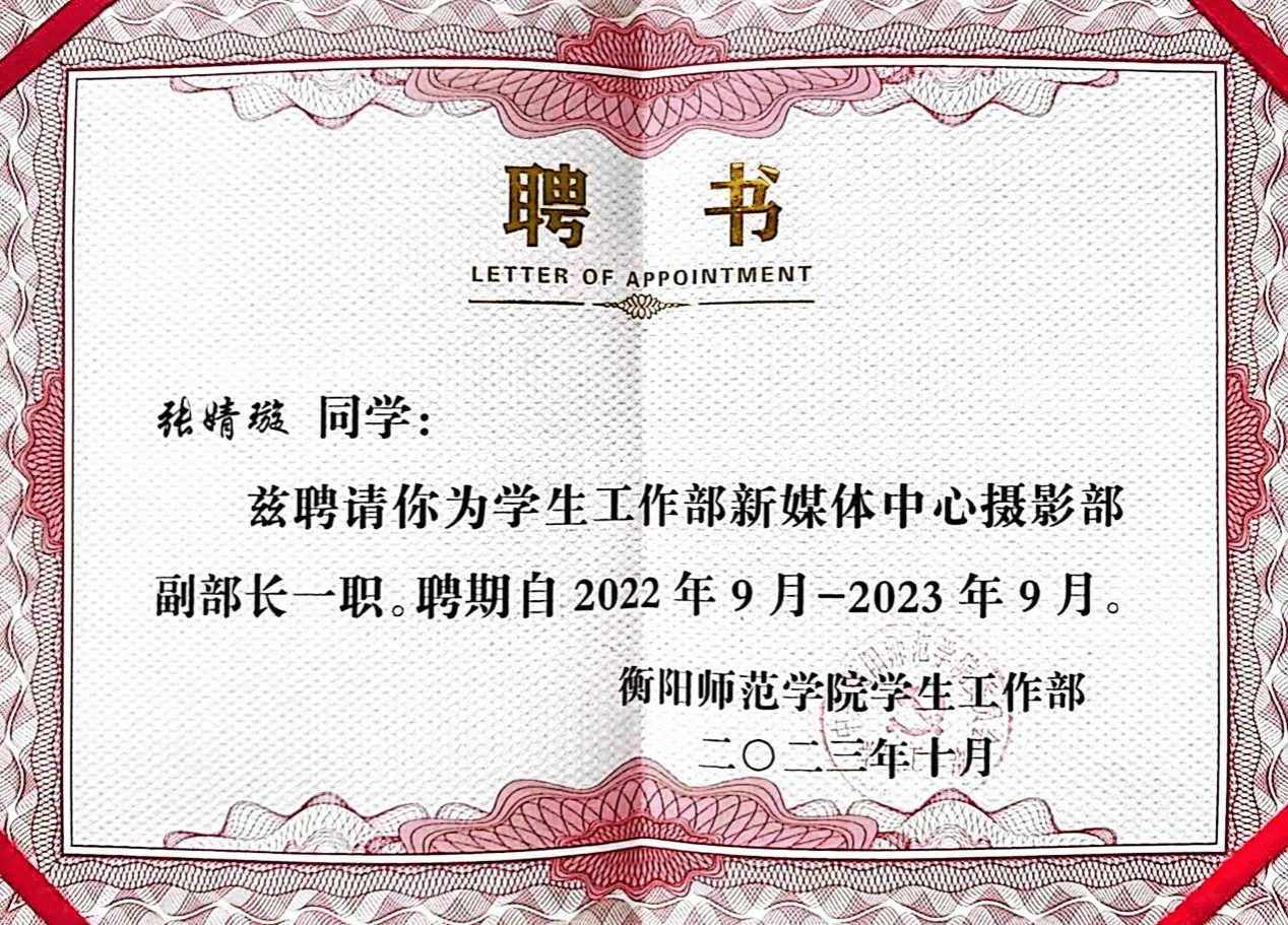 9.2022-2023学年担任学生工作部新媒体中心摄影部副部长