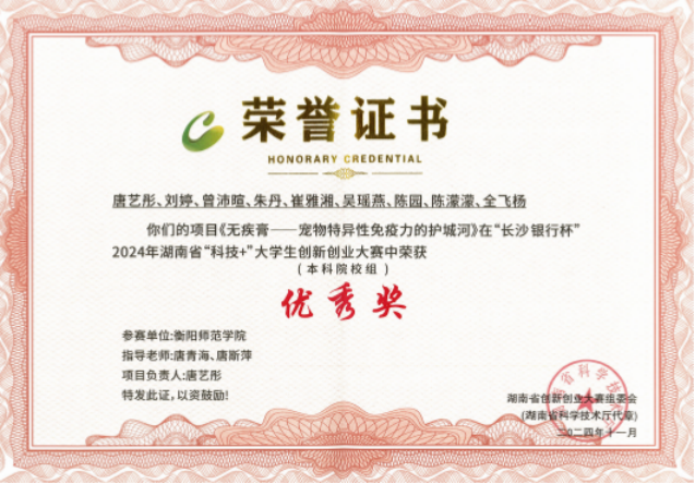 2.“长沙银行杯”2024年湖南省“科技+”大学生创新创业大赛优秀奖
