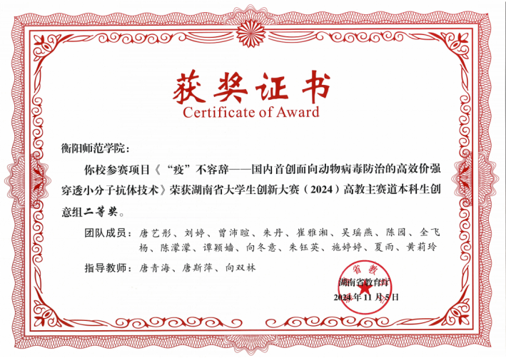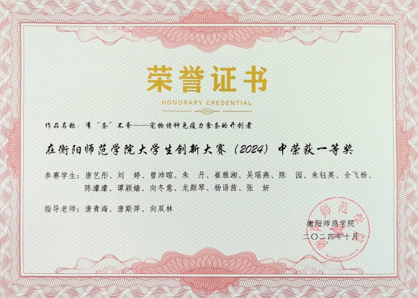 1.衡阳师范学院大学生创新大赛(2024)一等奖