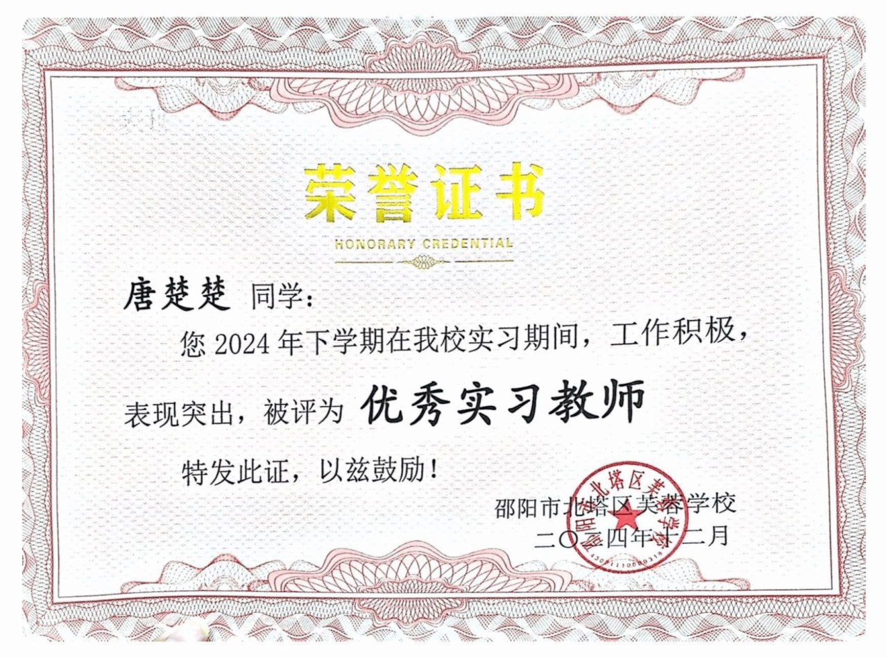 2024年邵阳市北塔区芙蓉学校“优秀实习教师”