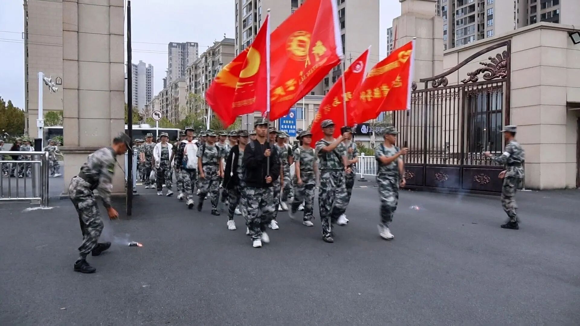 拉练的队伍在晨光里舒展成笔直的线,步伐踏得整齐,每一步都带着沉甸甸的力量。同学们把旗帜举得高高的,红绸子在风里翻涌;口号喊得震天响,歌声裹着朝气漫过校园——唱的是团结一心,藏的是少年不服输的韧劲,脚下的路也越走越坚定。