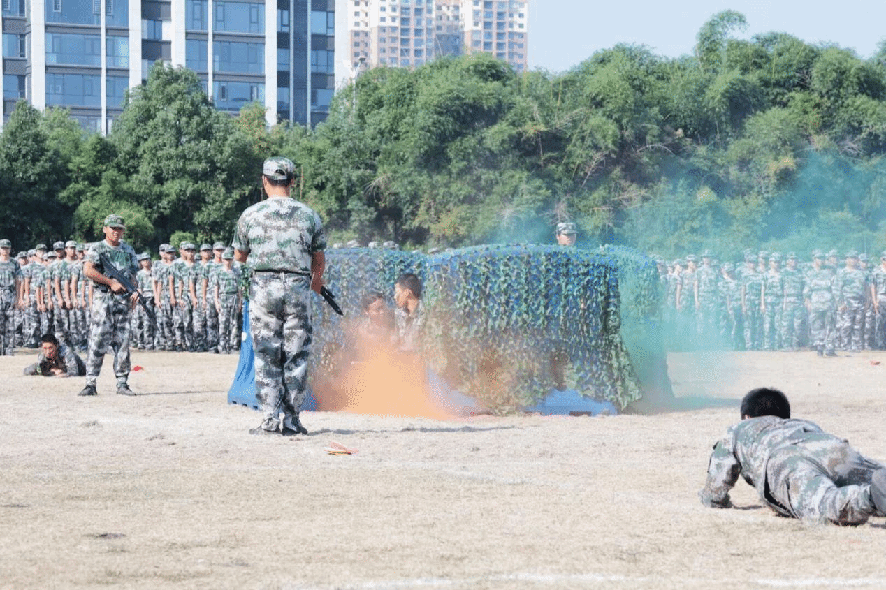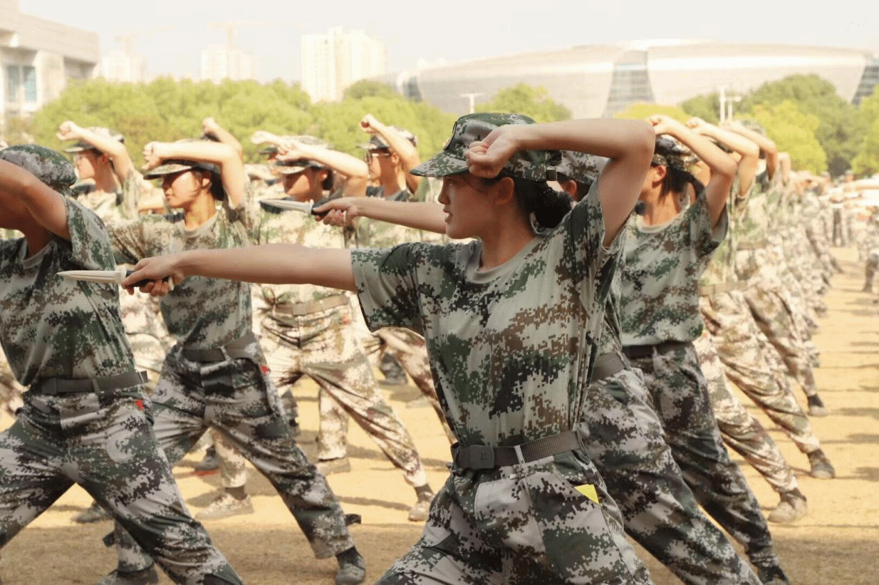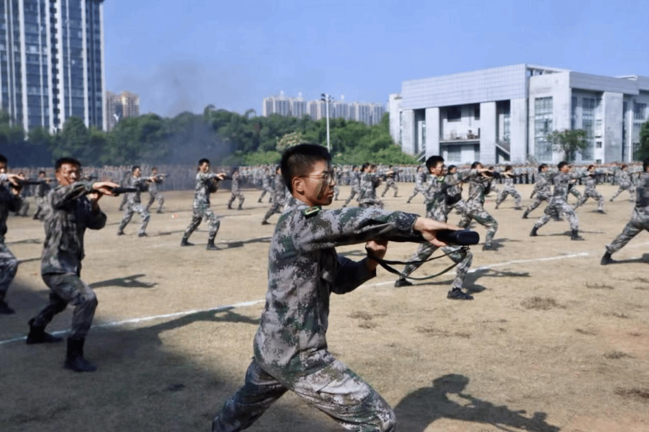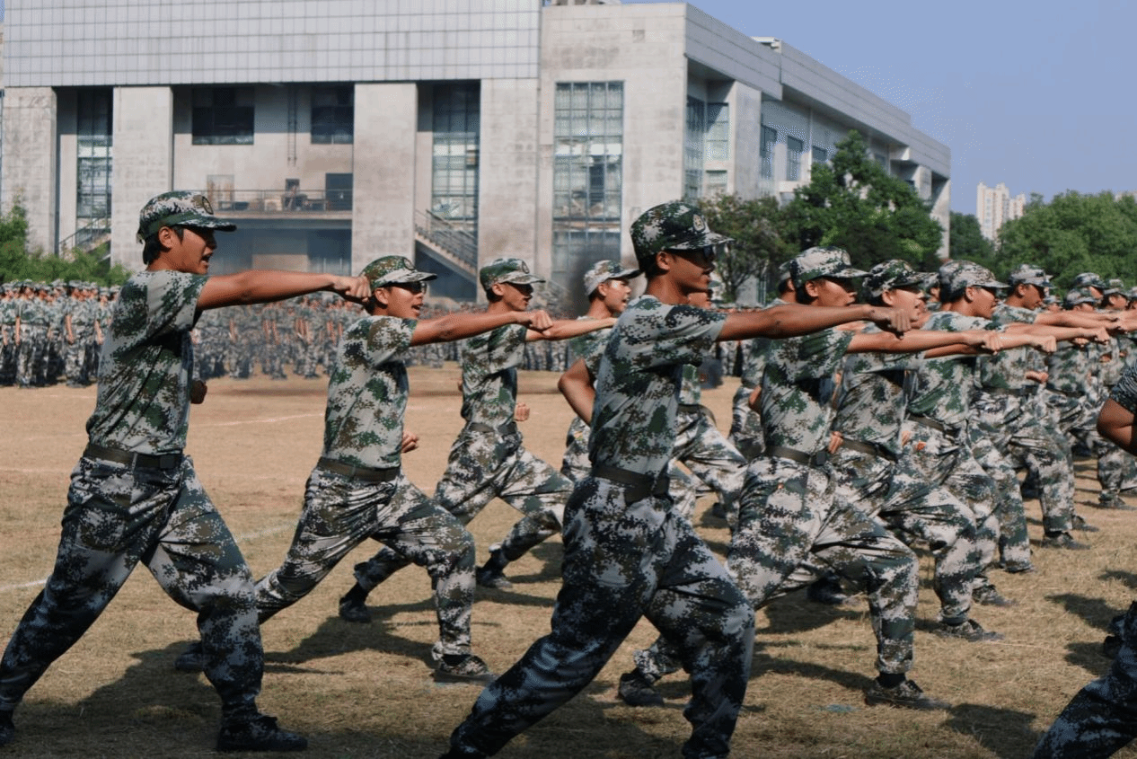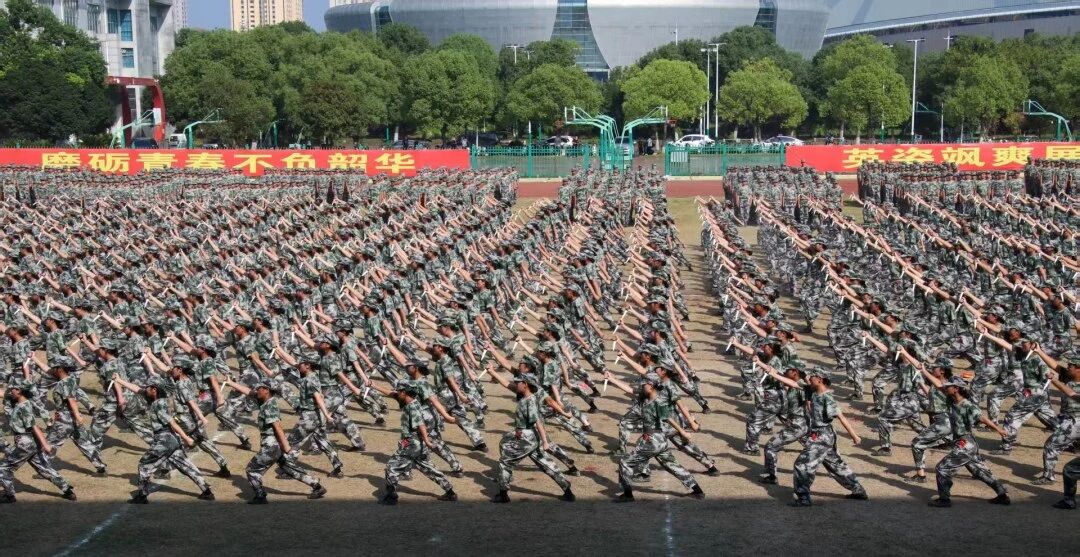 军训教官们身姿矫健、势如破竹,拳脚起落间尽显刚毅血性。整齐划一的动作配合震天的呐喊声,宛若游龙穿梭,在开合辗转之中,既彰显出军人的过硬素养,也传递出震撼人心的集体力量与少年锋芒。