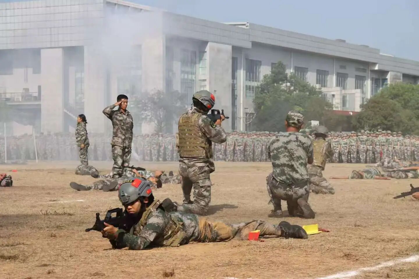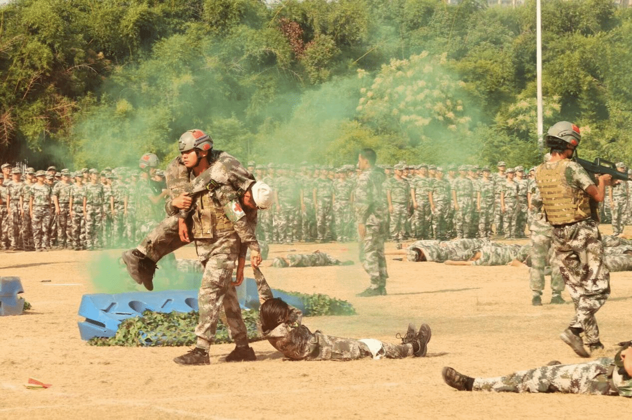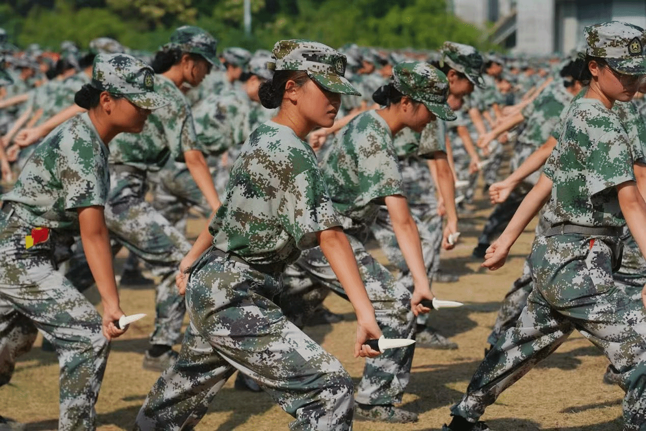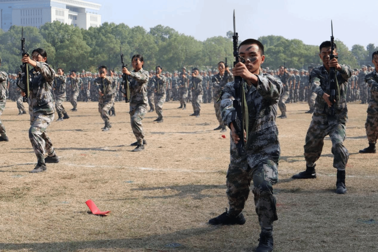 军训教官们身姿矫健、势如破竹,拳脚起落间尽显刚毅血性。整齐划一的动作配合震天的呐喊声,宛若游龙穿梭,在开合辗转之中,既彰显出军人的过硬素养,也传递出震撼人心的集体力量与少年锋芒。