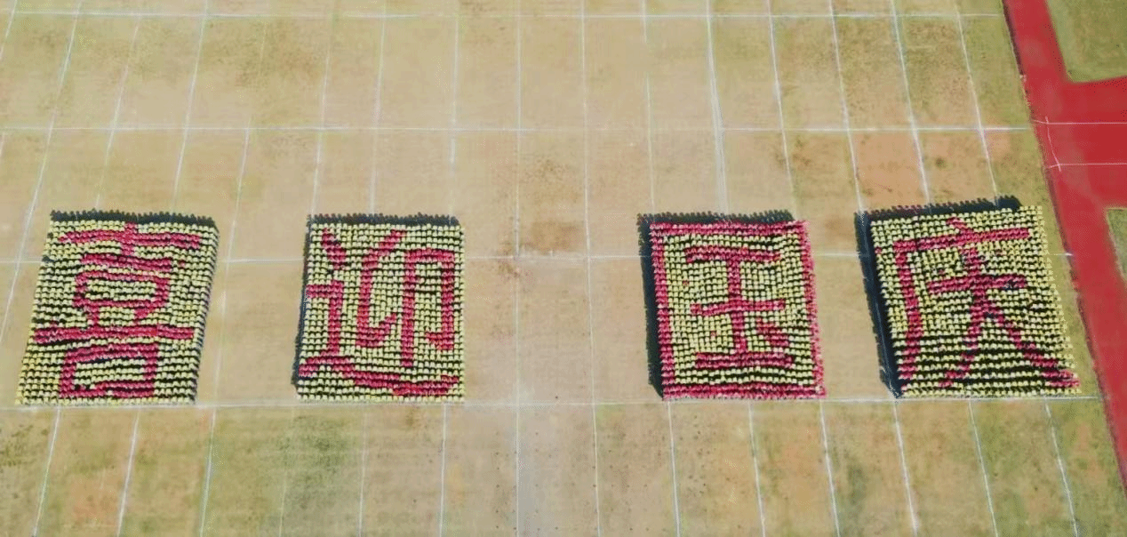 新生方阵以红黄双色交替变换,构筑出一幕幕流动的视觉史诗。从“1945”到“2025”,跃动的数字不仅铭记着祖国的发展足迹与时代坐标,更凝聚着衡师学子的历史责任感;随后“开创未来,喜迎国庆”的字样磅礴呈现,以青春誓言诠释着“初心不忘,乘风破浪开启新征程”的坚定信念。