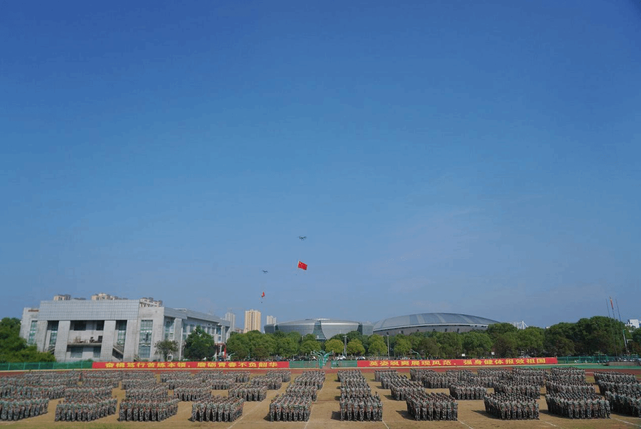 新生们身姿挺拔如松,每一个动作都干脆利落,将蓬勃生机融入整齐的队列之中。他们昂首阔步、步伐一致,一举一动尽显从容自信,凝聚成强大的集体力量,完美展现出军训期间锤炼出的纪律意识与青春活力。