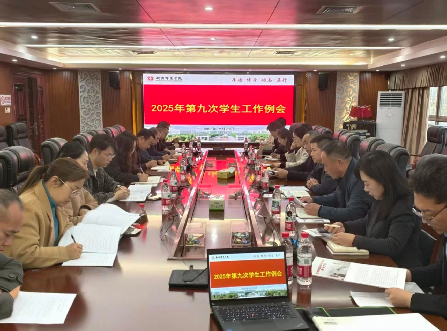 12月23日下午,我校在东校区行政楼第二会议室召开2025年第九次学生工作例会,系统总结近期工作,深入分析当前形势,重点部署期末及寒假阶段学生教育管理服务各项任务。校党委委员、副校长唐芳贵出席会议并讲话。学生工作部、后勤处、保卫部、研究生院、校团委等相关职能部门负责人及各学院党总支副书记参加会议。会议由学生工作部部长朱贤友主持。